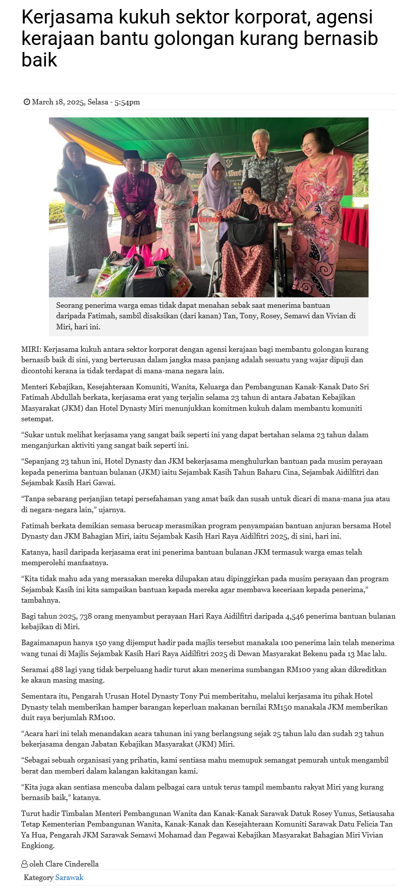 Sumber Berita: https://www.utusanborneo.com.my/2025/03/18/kerjasama-kukuh-sektor-korporat-agensi-kerajaan-bantu-golongan-kurang-bernasib-baik