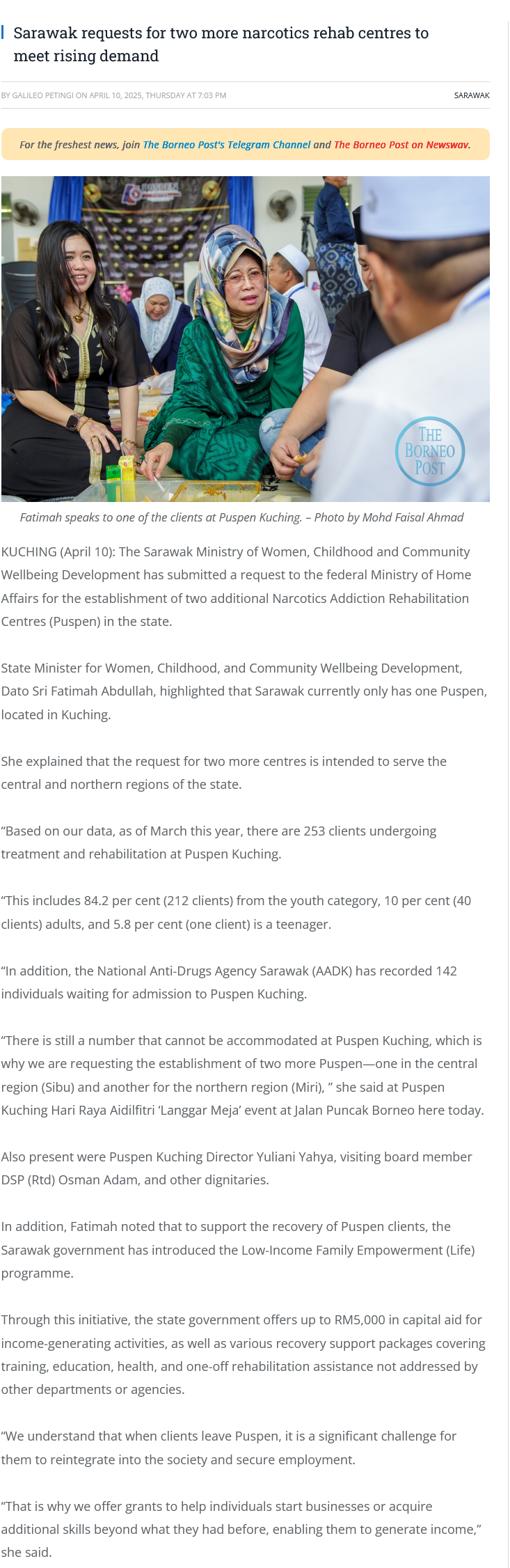 Sumber Berita: https://www.theborneopost.com/2025/04/10/sarawak-requests-for-two-more-narcotics-rehab-centres-to-meet-rising-demand/