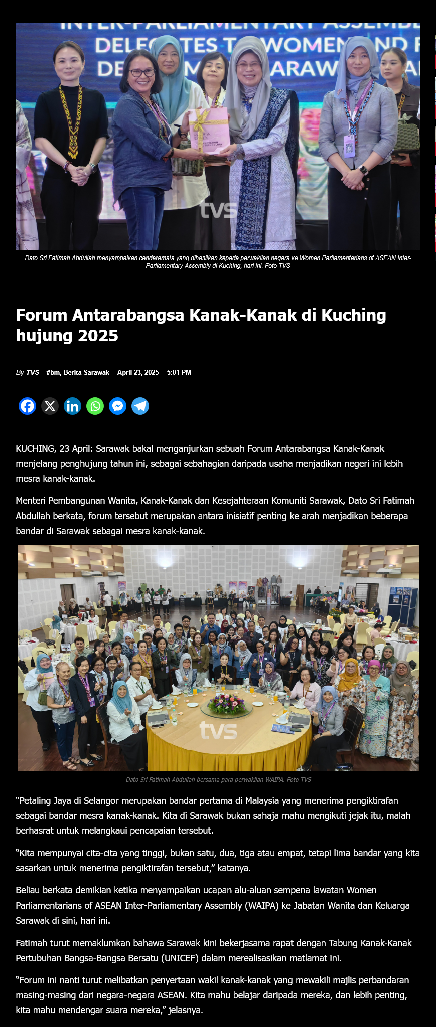 Source of News: https://www.tvsarawak.my/2025/04/23/forum-antarabangsa-kanak-kanak-di-kuching-hujung-2025/
