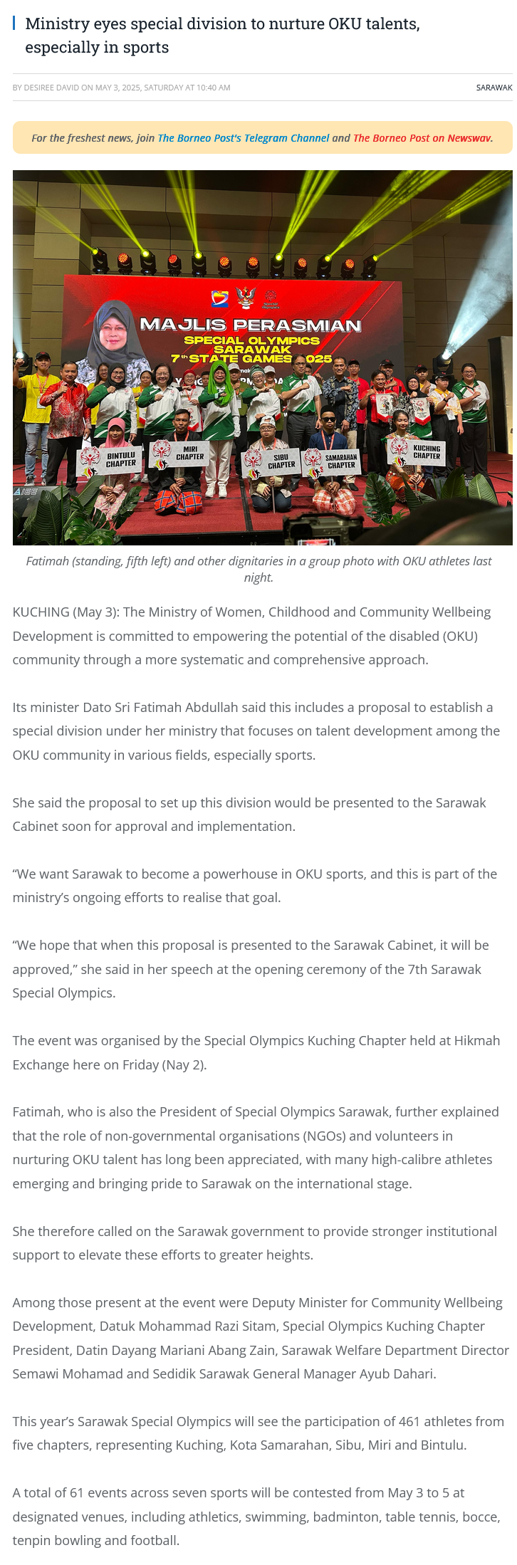 Sumber Berita: https://www.theborneopost.com/2025/05/03/ministry-eyes-special-division-to-nurture-oku-talents-especially-in-sports/
